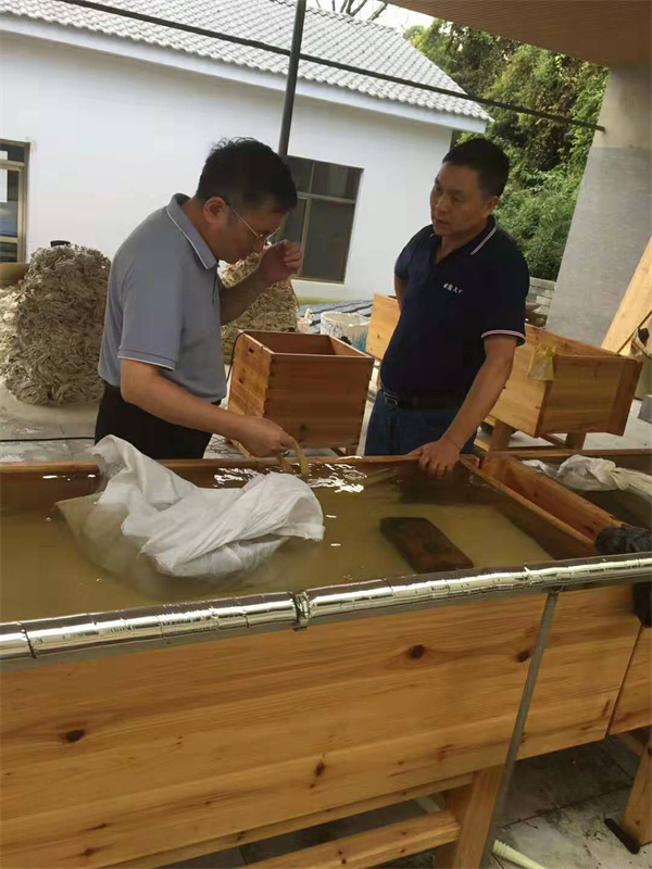 2021年8月27日,中科大湯書昆院長再一次對(duì)我公司徽州楮皮紙恢復(fù)工藝做指導(dǎo)。
